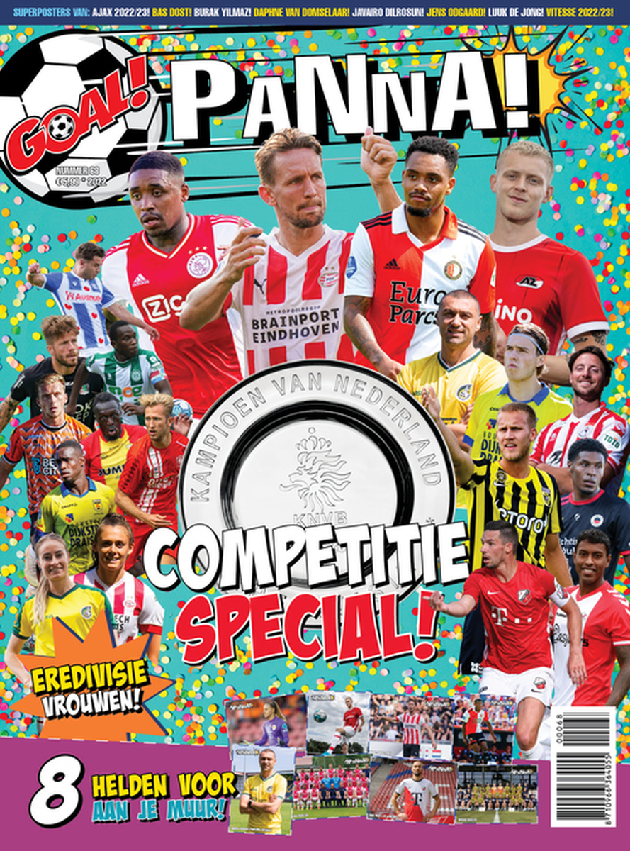 De Eredivisie is een feest. En iedereen is uitgenodigd! Bij PANNA! genieten we weer van iedere minuut dat we de bal over de Nederlandse velden zien rollen. Bij de achttien Eredivisie-clubs heeft deze zomer weer een spannende stoelendans plaatsgevonden. Welke speler is bij welke club gaan zitten? Dat lees je in deze competitiespecial van PANNA!. Daarin vertellen we alles dat je moet weten over de beste achttien clubs in ons land. En natuurlijk ook alles over de elf ploegen die gaan strijden om de titel in de Vrouwen Eredivisie! Maar ook de duurste voetballers in kaart, een interview met Cody Gakpo, de ontleed, acht superposters en we zoomen in op Manchester United! Bestel de PANNA! Competitiespecial nu via deze link!